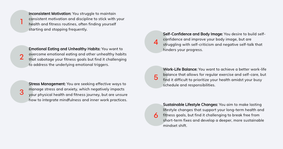 Inner health coaching focuses on improving overall well-being by addressing mental, emotional, AND physical health. This includes personalized guidance, support, and accountability on nutrition, exercise, stress management, and mindfulness practices to help clients achieve their life-changing goals.